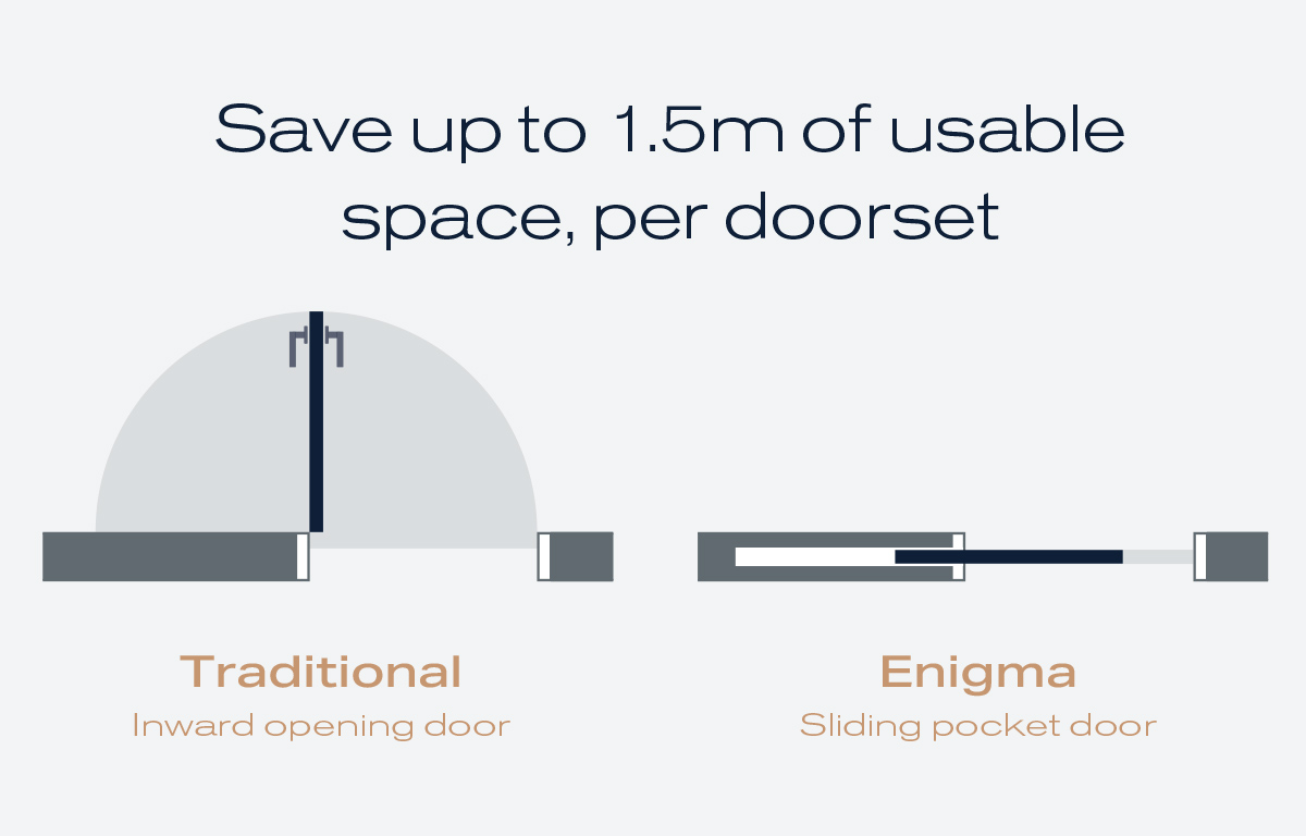 Providing pocket doors since 2008 has given us the opportunity to work on 1,418 projects so far, supplying over 11,100 Enigma pocket doors, and saving almost 17,000m2 of floor space…